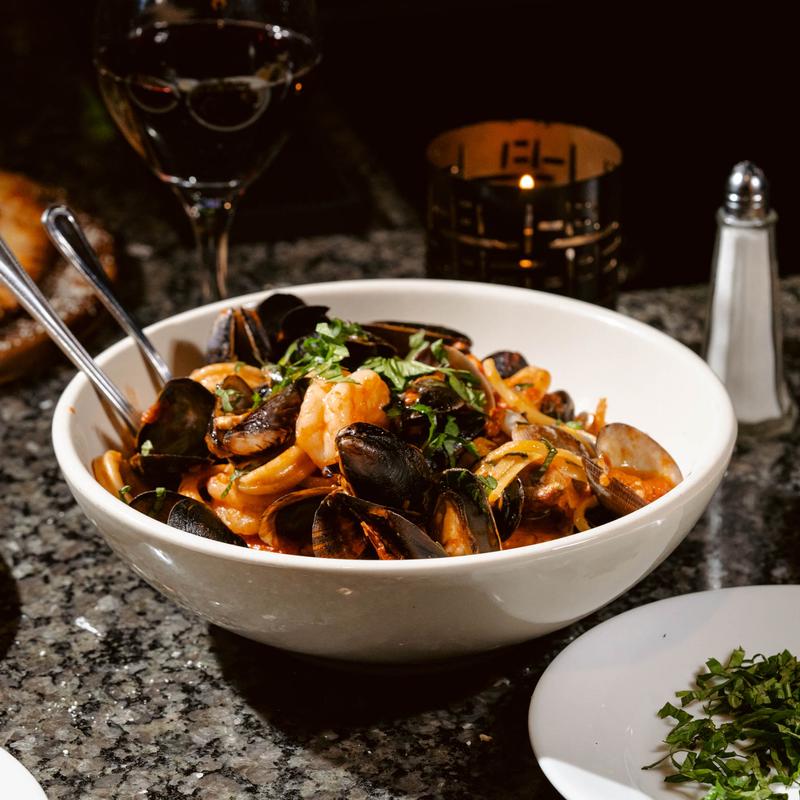 Shrimp, clams, mussels, calamari, and spicy tomato sauce.